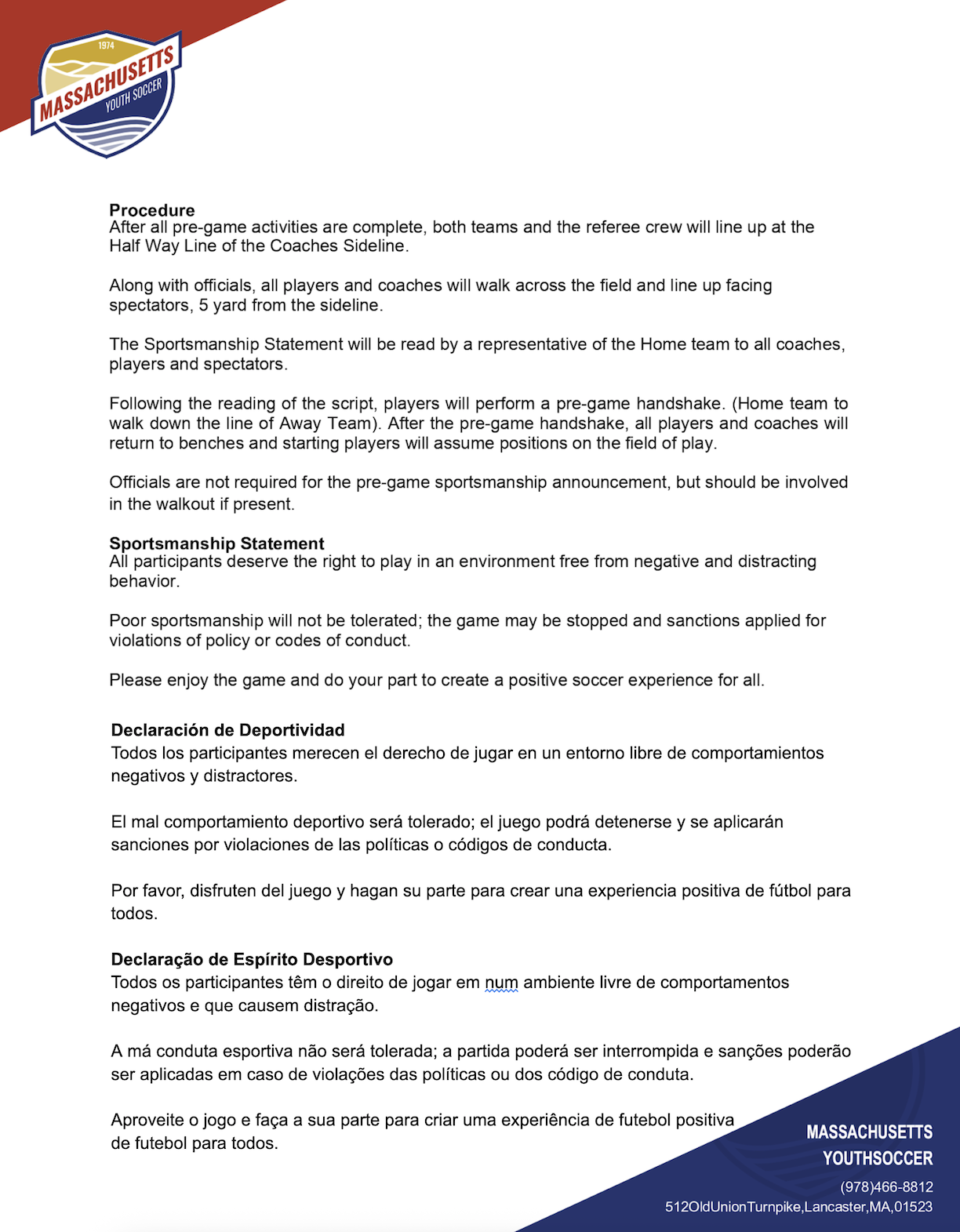 Mass Youth Soccer Codes of Contact and Zero Tolerance Policy